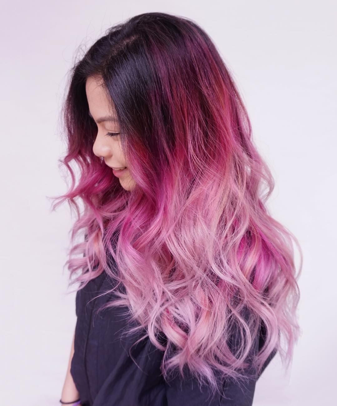 Розовые волосы с темными корнями