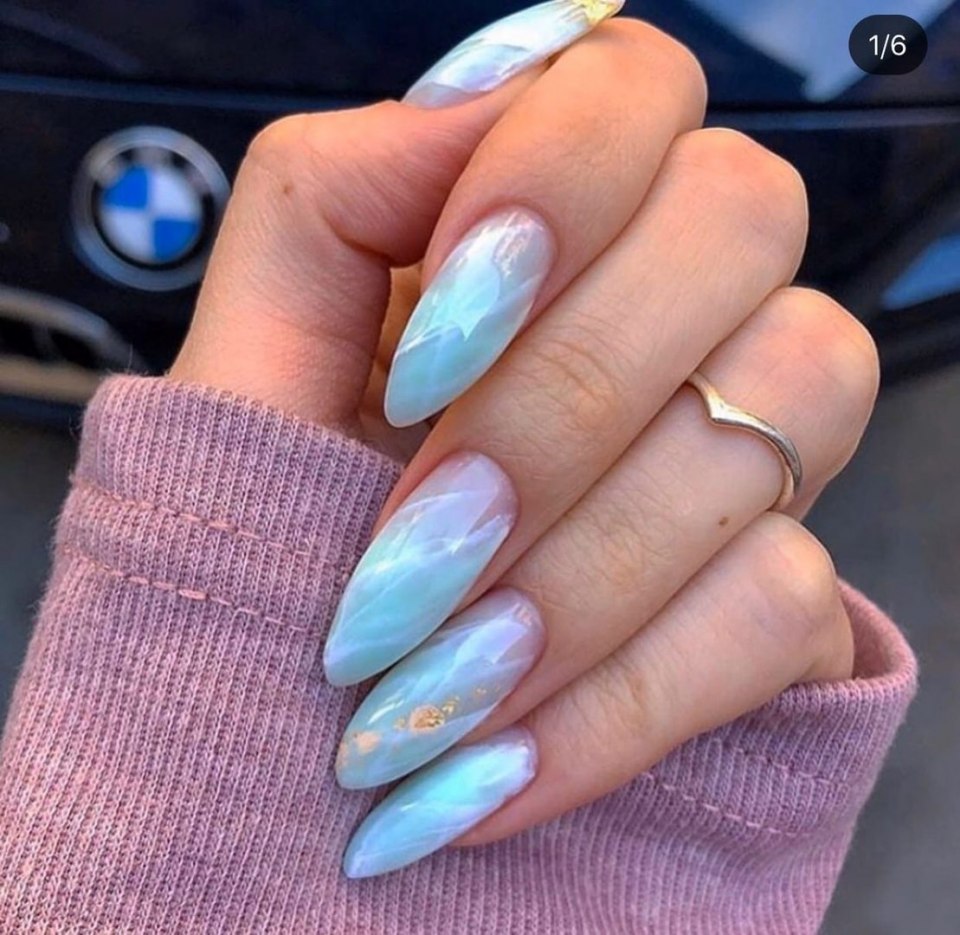 Голубой маникюр миндаль