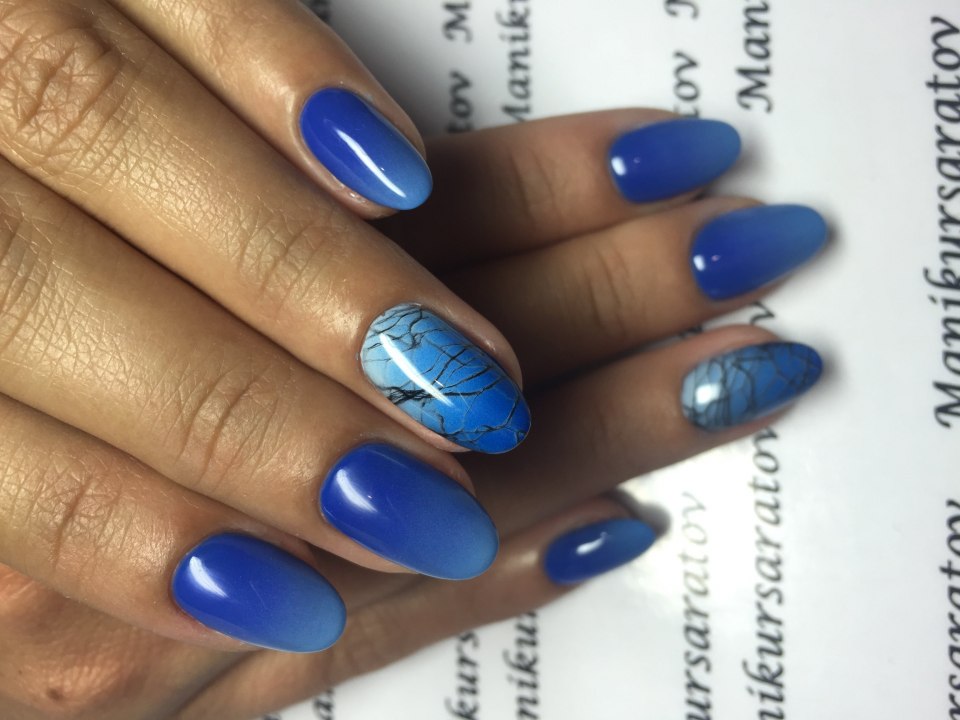 Маникюр синий градиент