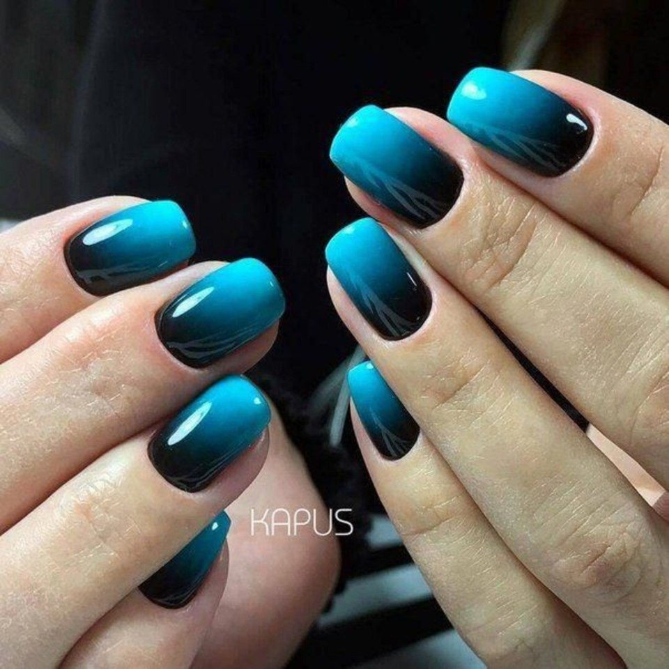 Маникюр омбре голубой с черным