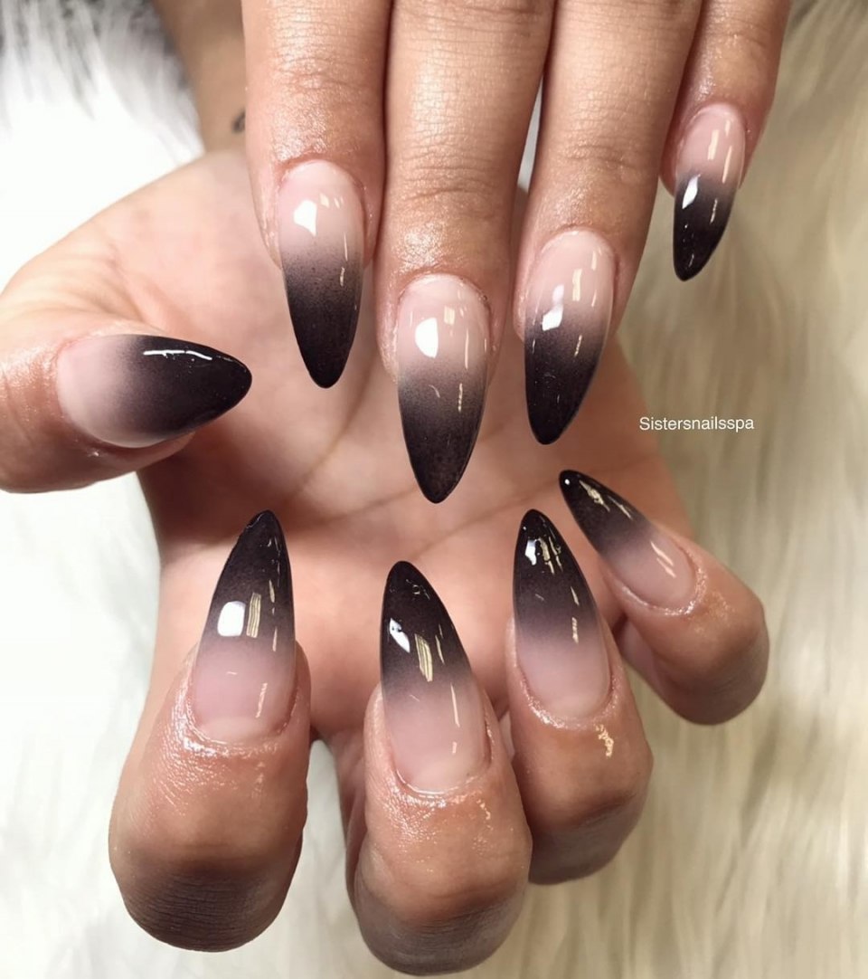 Черное омбре на ногтях