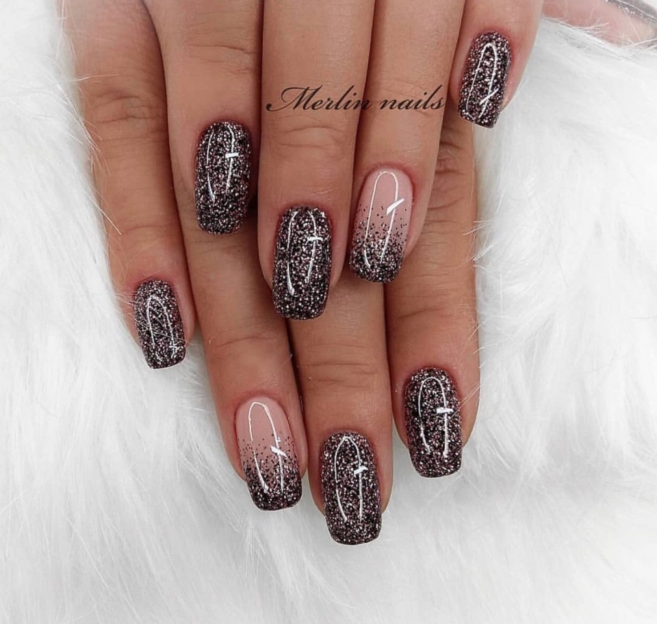 Черный маникюр с растяжкой блестками