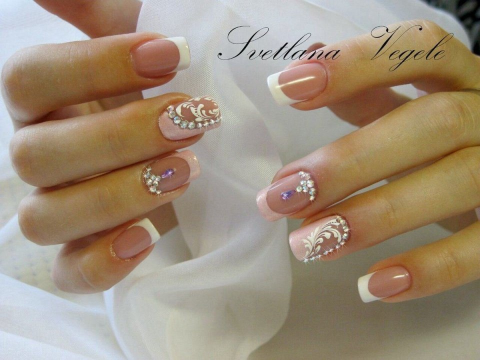 Маникюр на свадьбу невесте на квадратные ногти (89 фото)