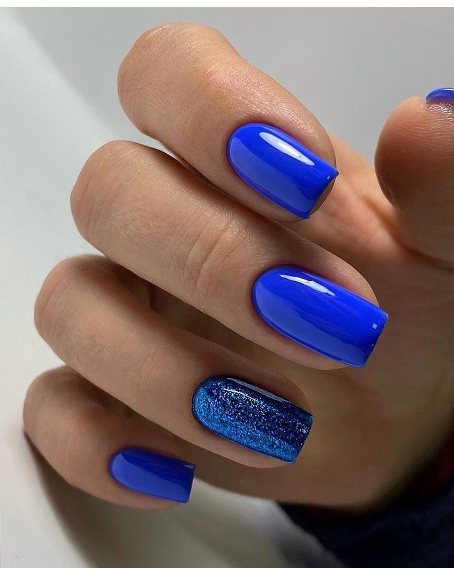 Ярко синие ногти летние