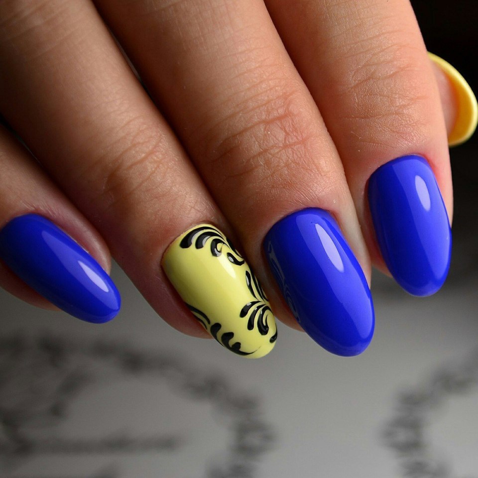 Маникюр в сине желтых тонах