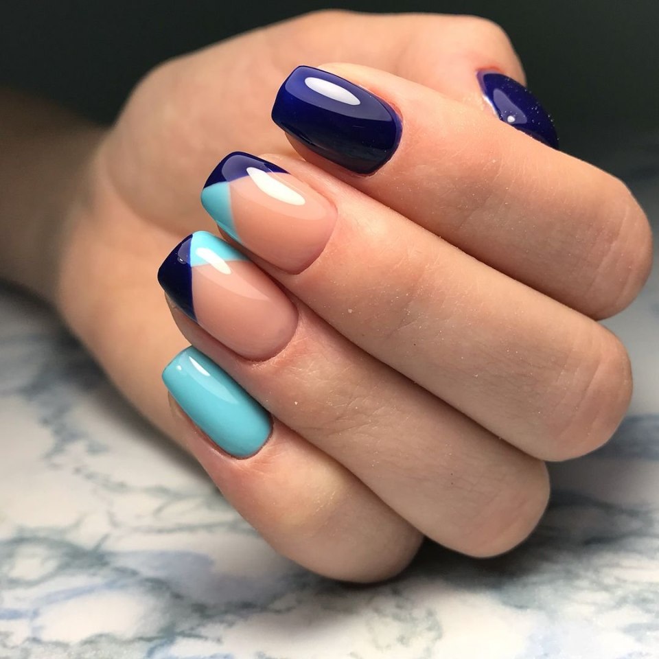 Маникюр в сине голубых тонах