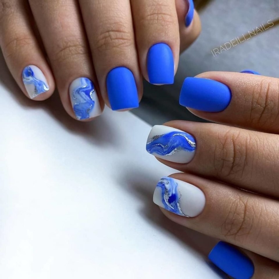 Синий маникюр 2021
