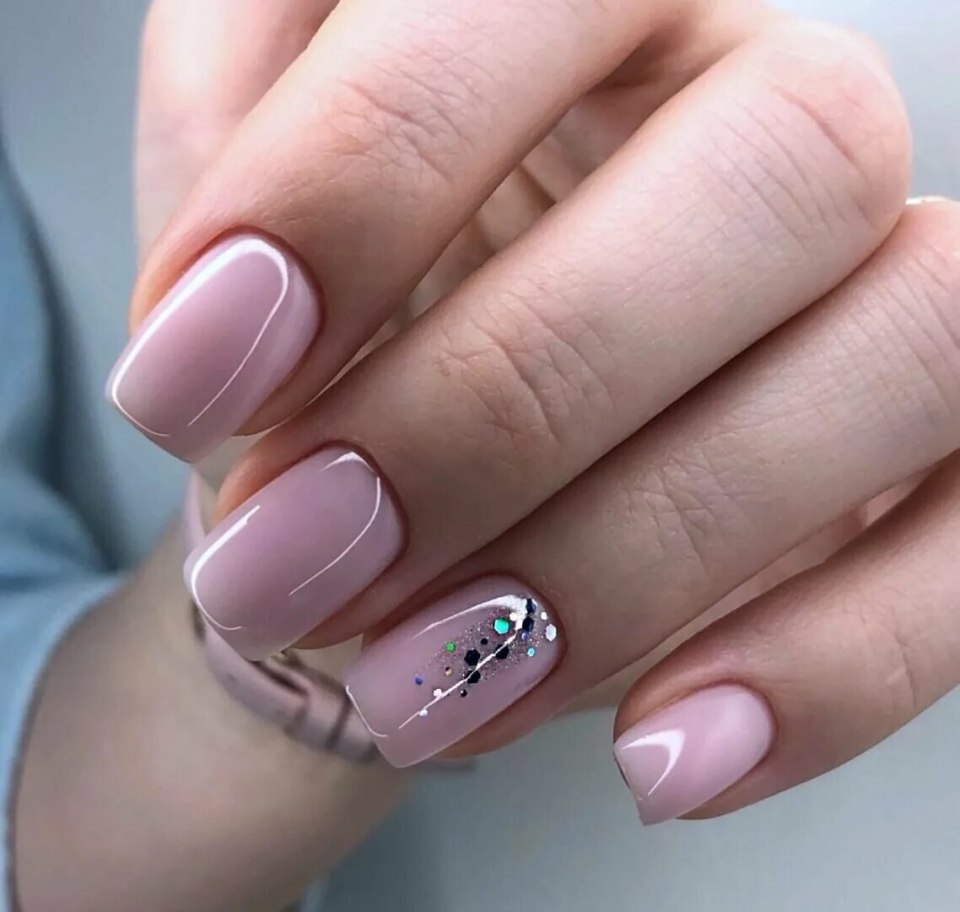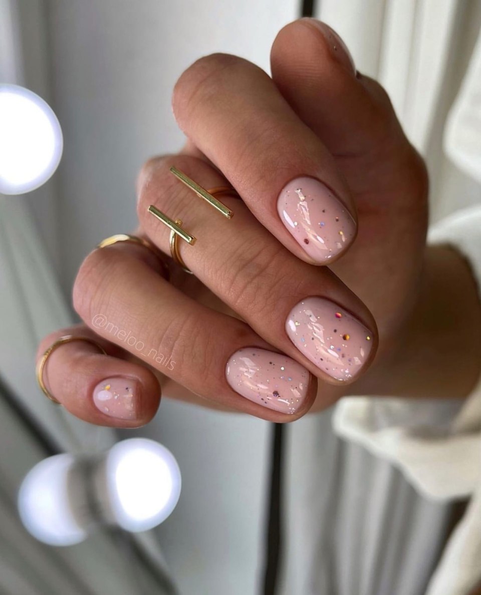 Маникюр нюдовый с блестками