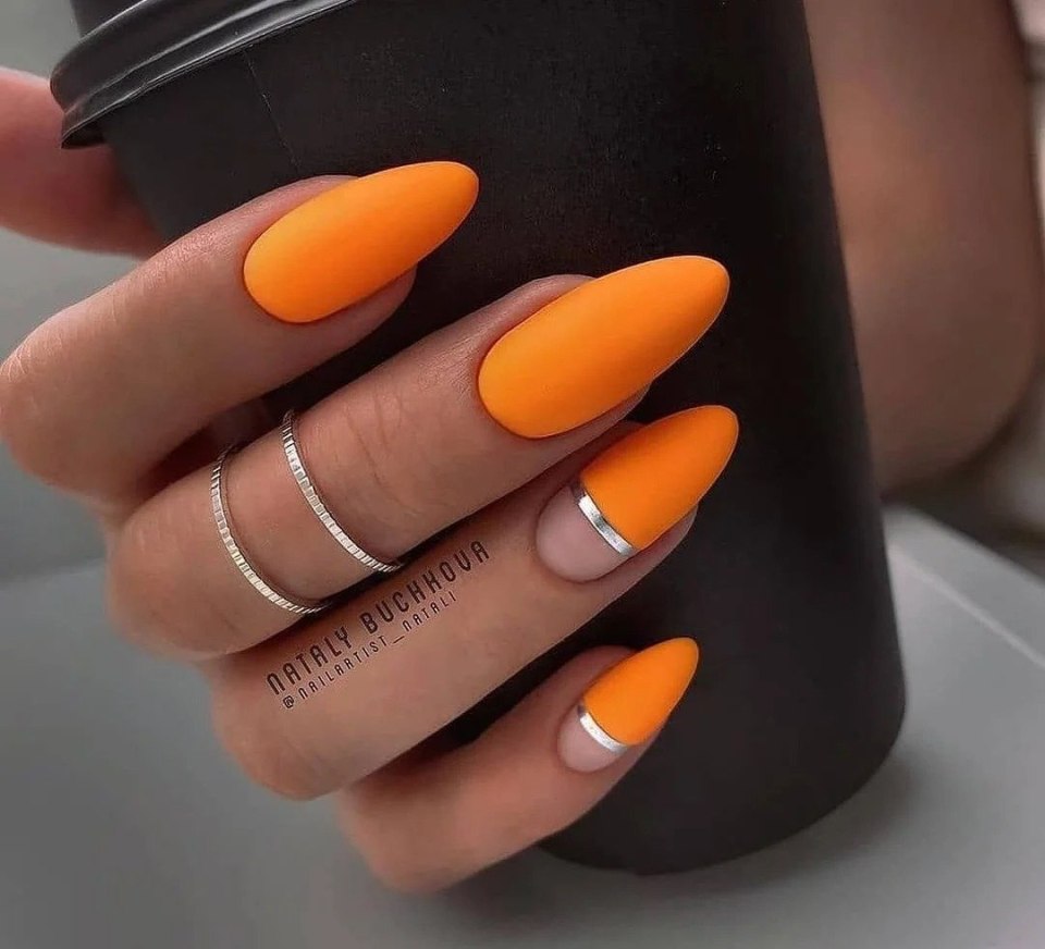 Маникюр однотонные миндаль ногти осень 2023 (88 фото)