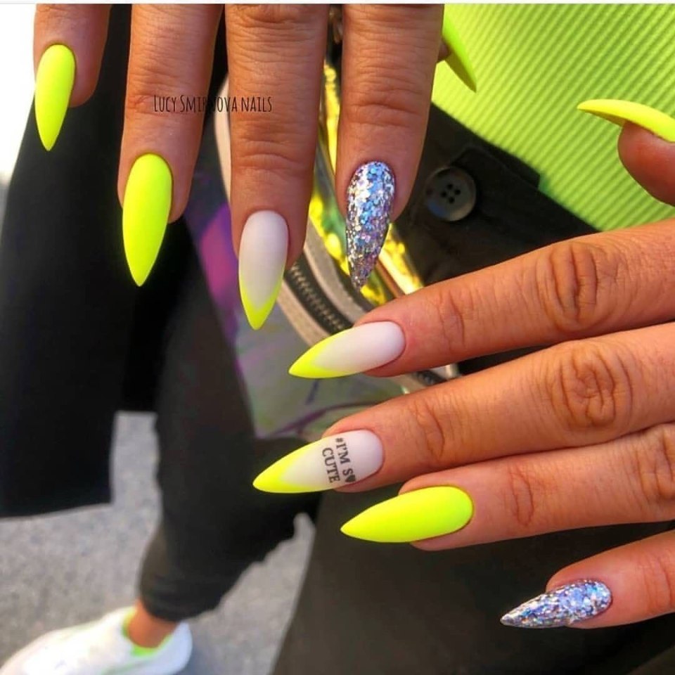 Кислотно желтый маникюр