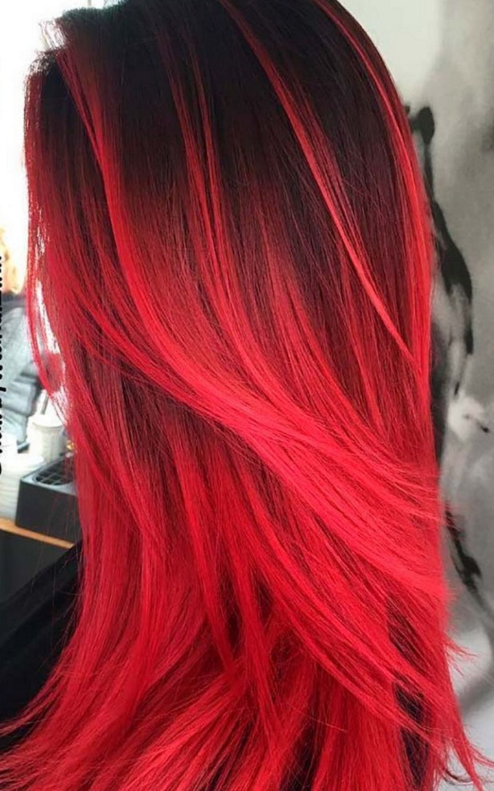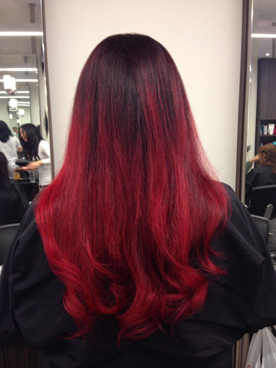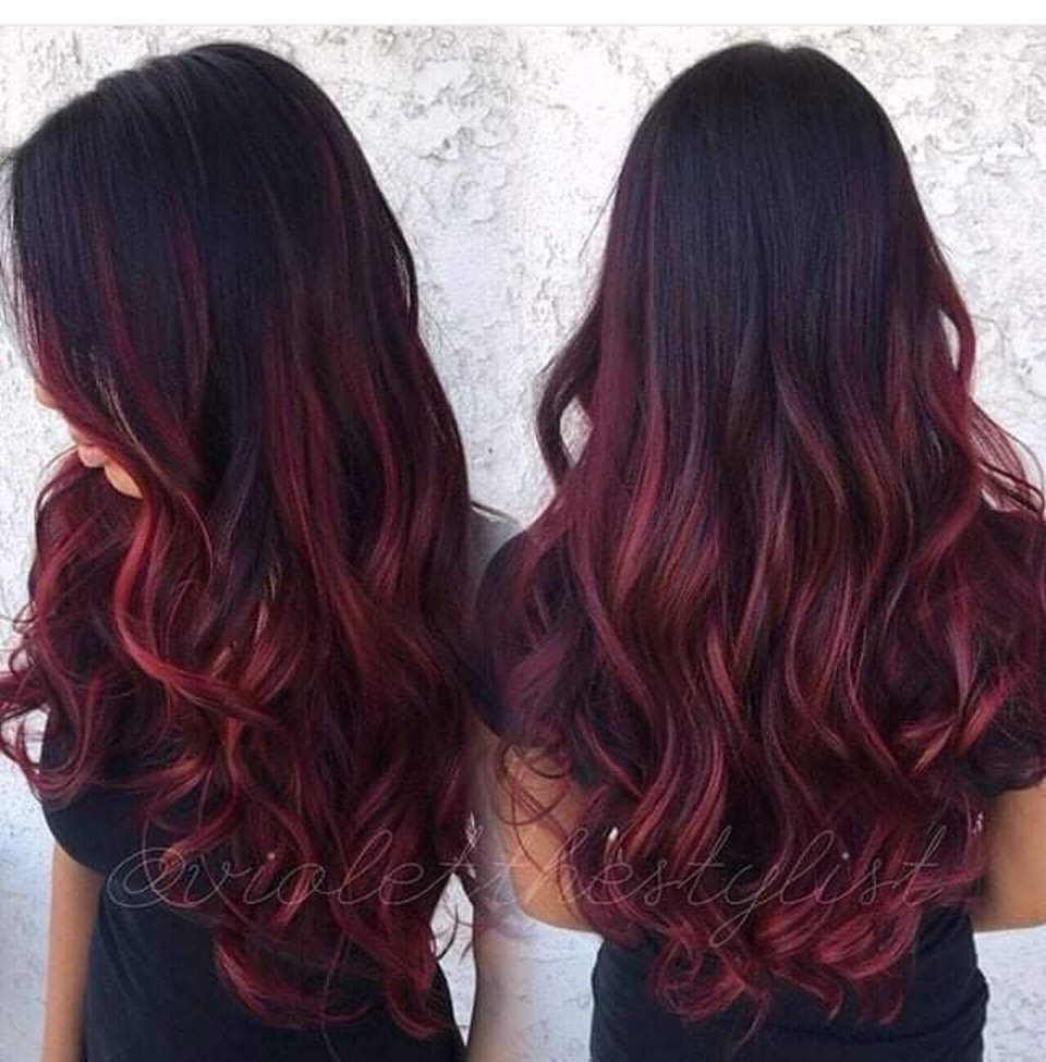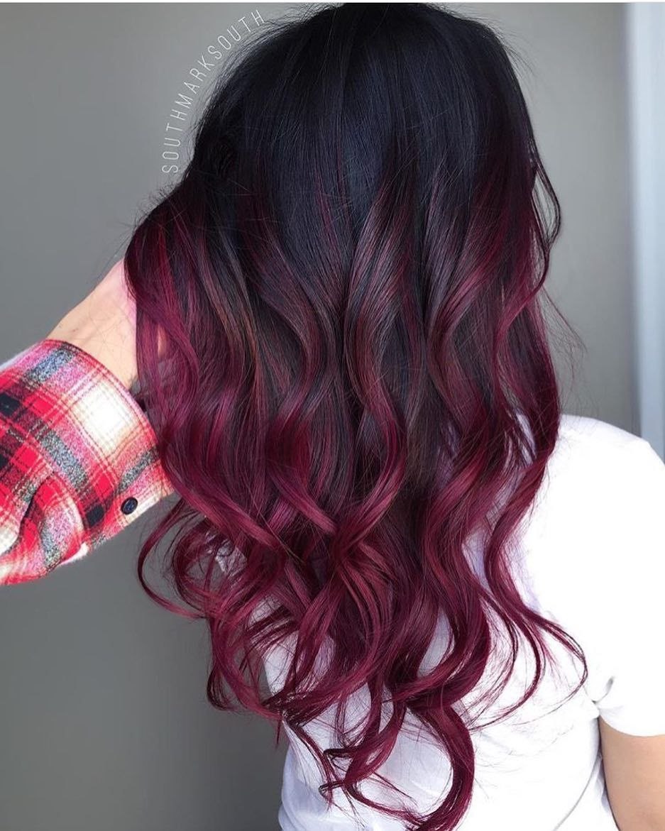 Красно черное омбре на длинные волосы