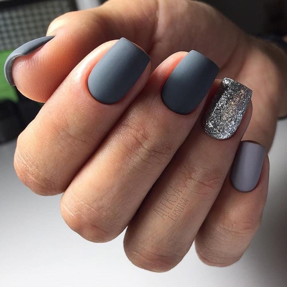 Серые матовые ногти