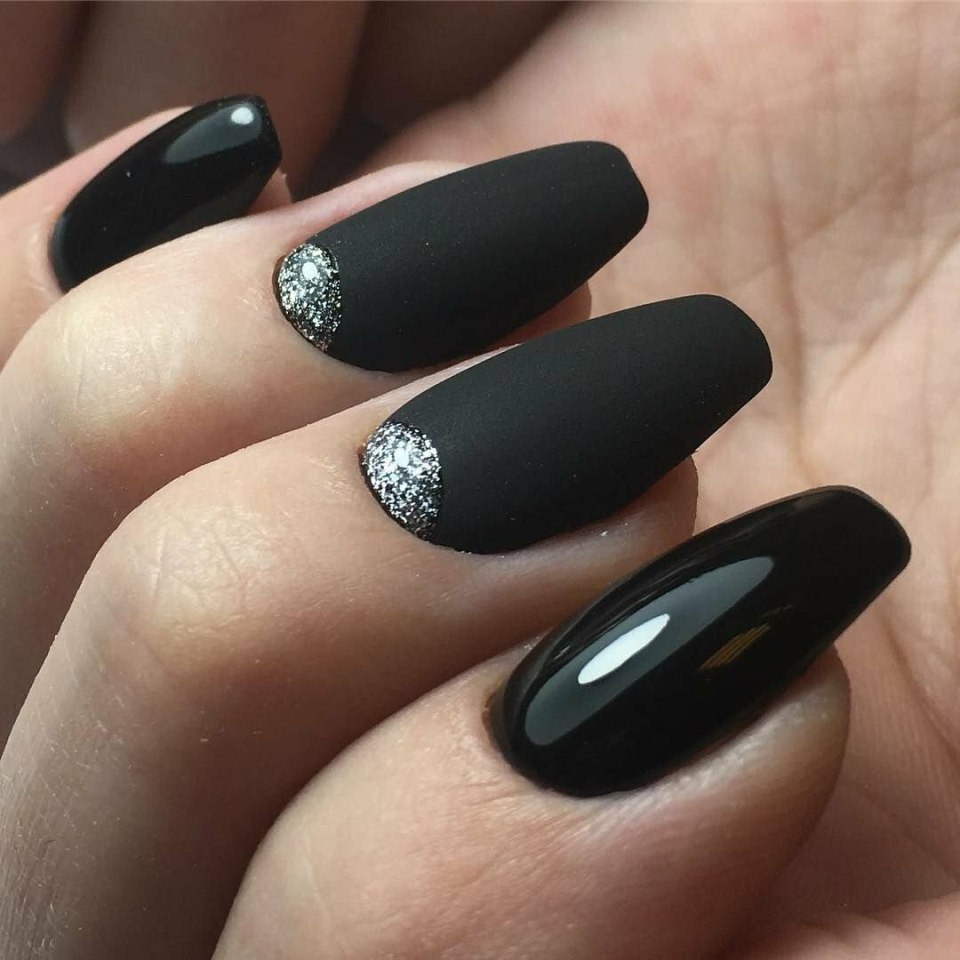 Черный матовый с глянцем маникюр