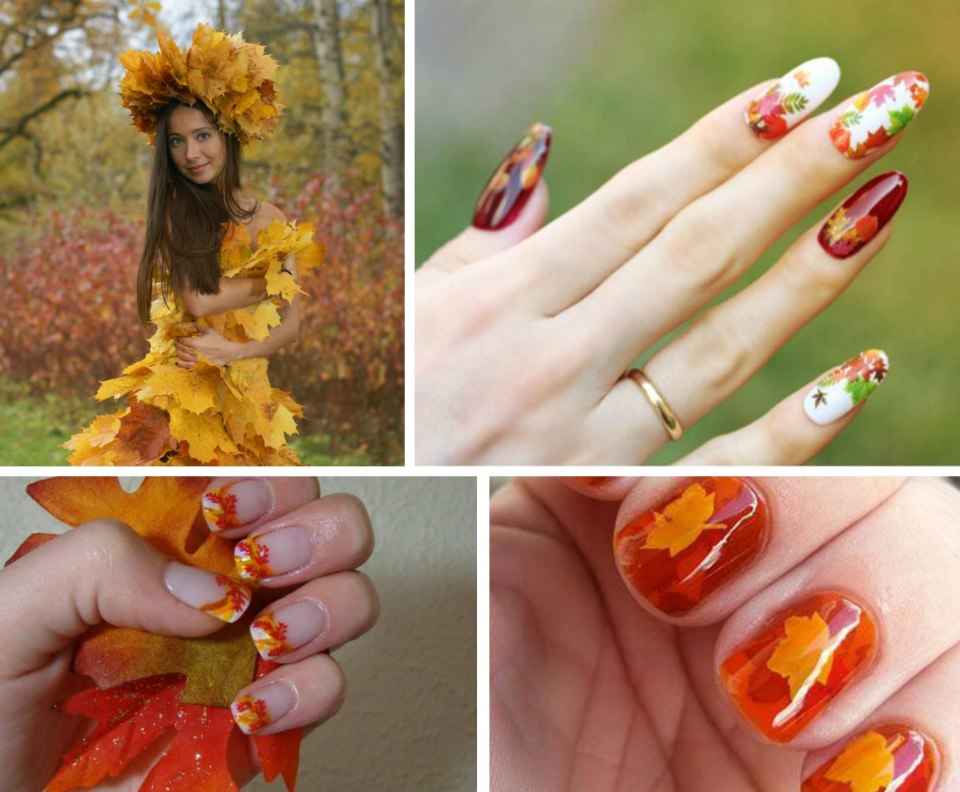 Ногти с осенней листвой