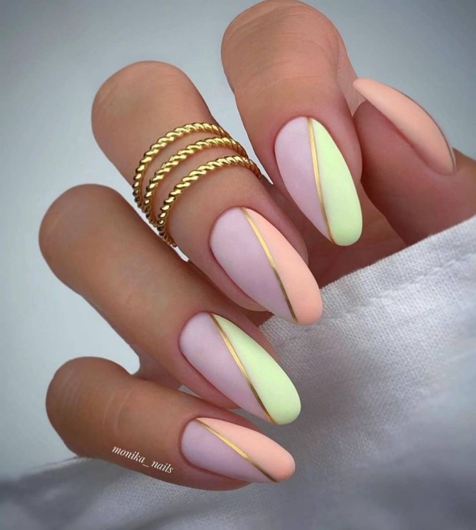 Маникюр на миндальные ногти лето
