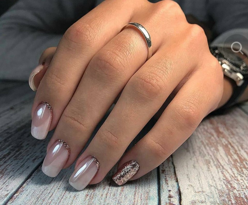 Розовый маникюр 2021 на короткие ногти втирка