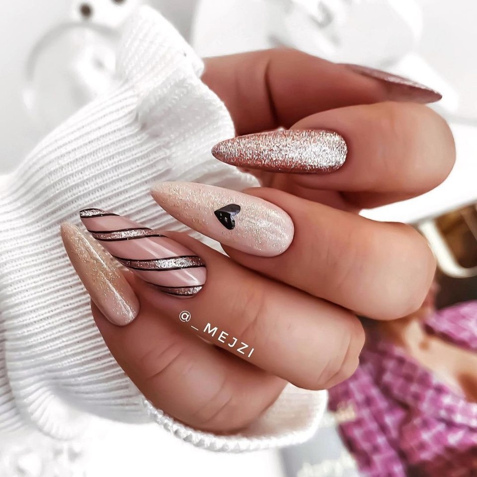 Маникюр на новый год 2023 красный на миндалевидные ногти