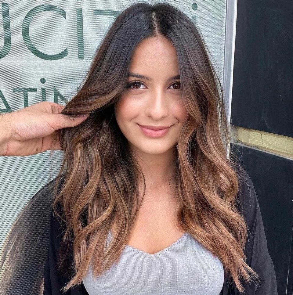 Окрашивание волос на средние волосы для брюнеток с челкой