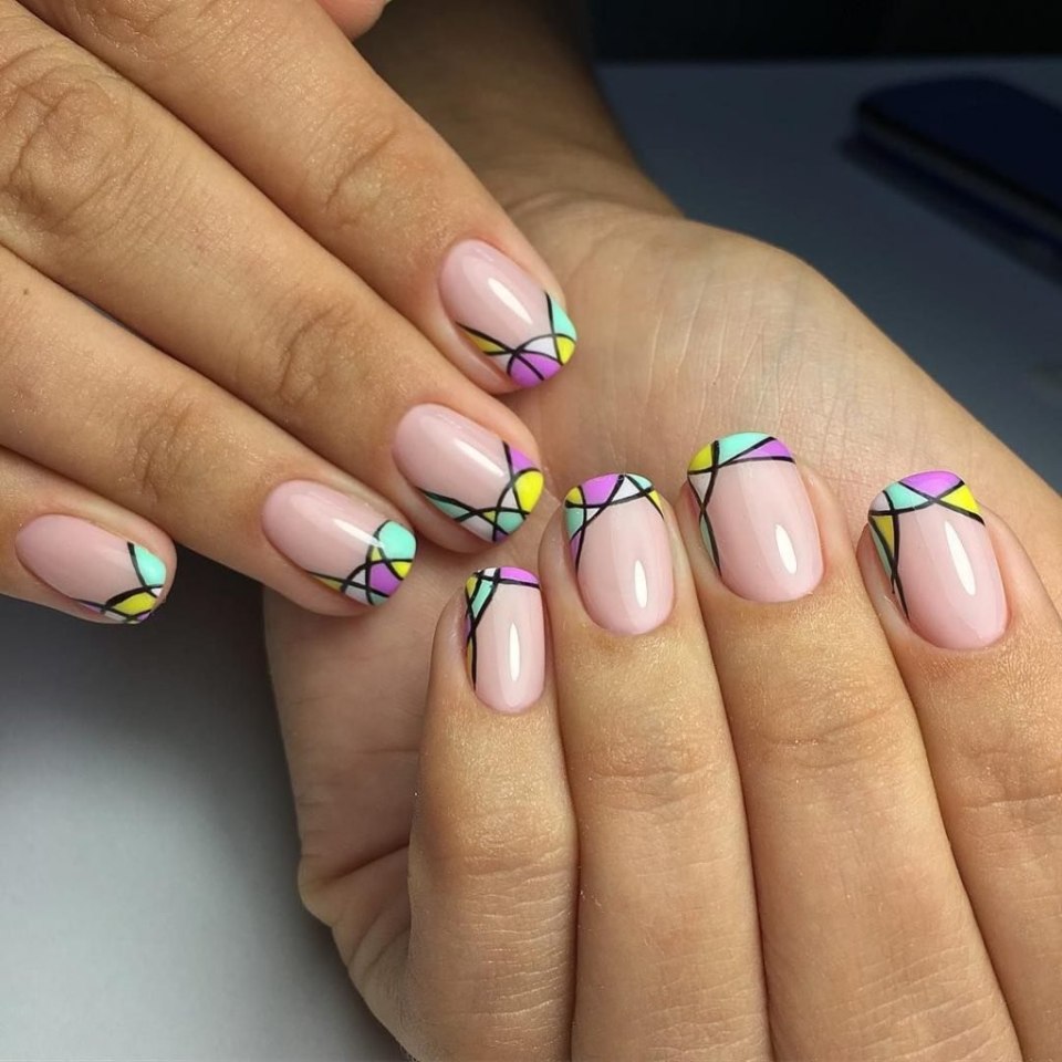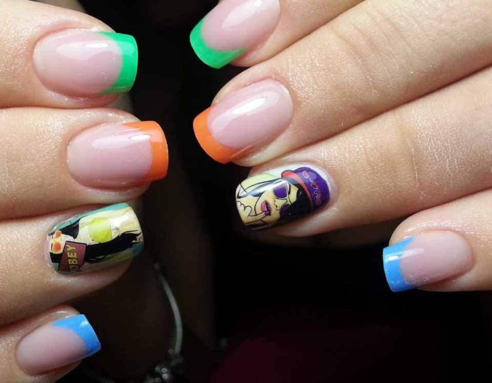 Маникюр разноцветный френч