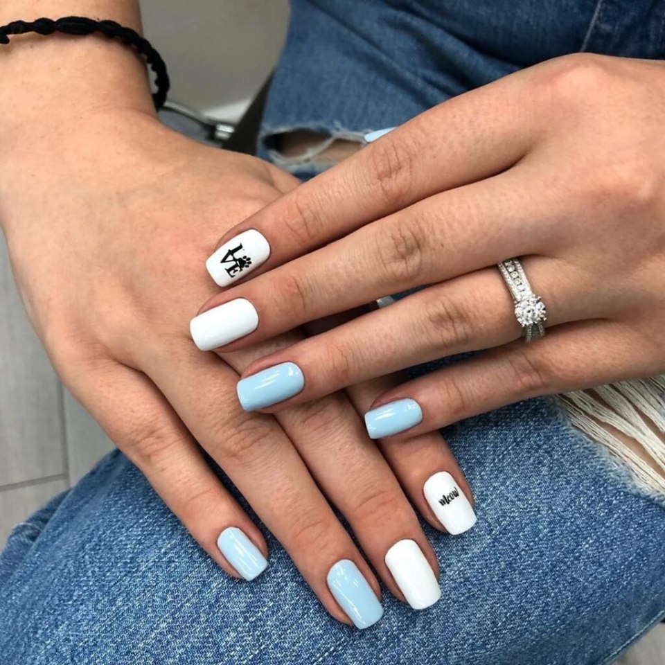 Розовый и голубой маникюр на разных руках