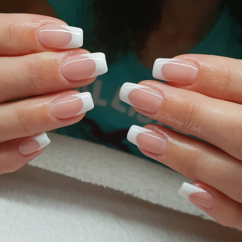 Френч маникюр на короткие квадратные ногти 2023 (100 фото)