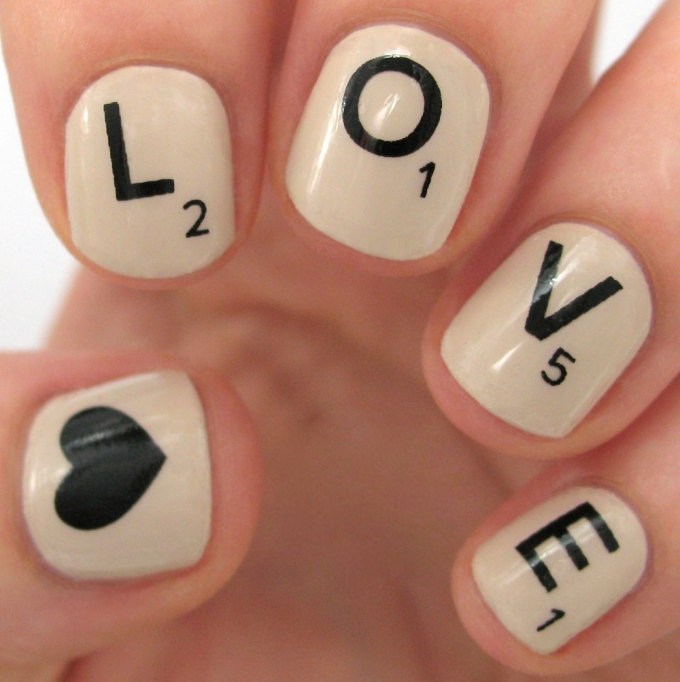 Маникюр на короткие ногти с буквами