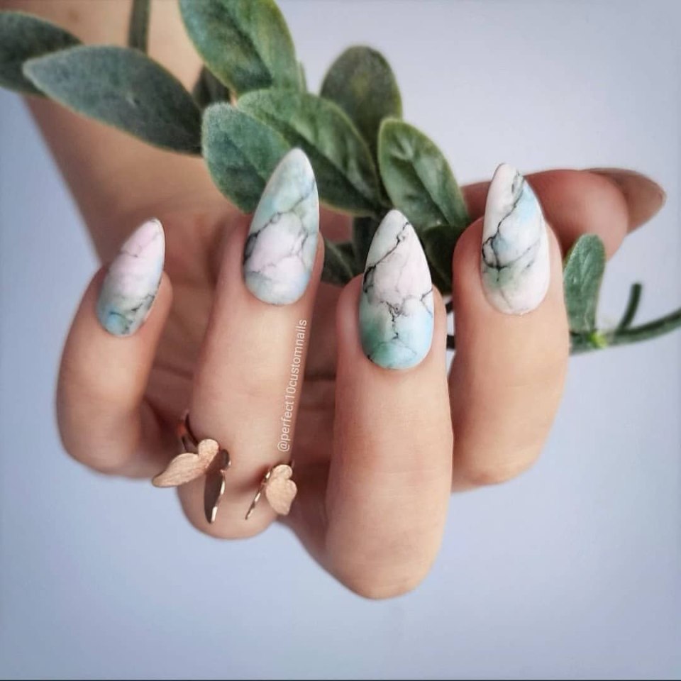 Мраморные ногти миндаль 2021