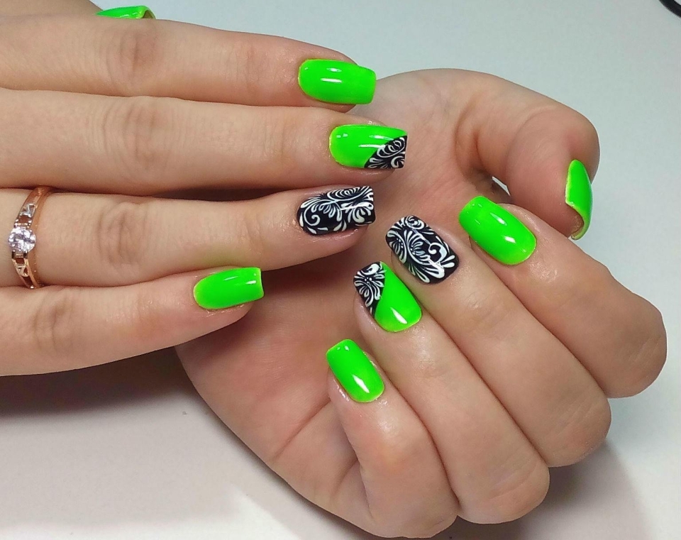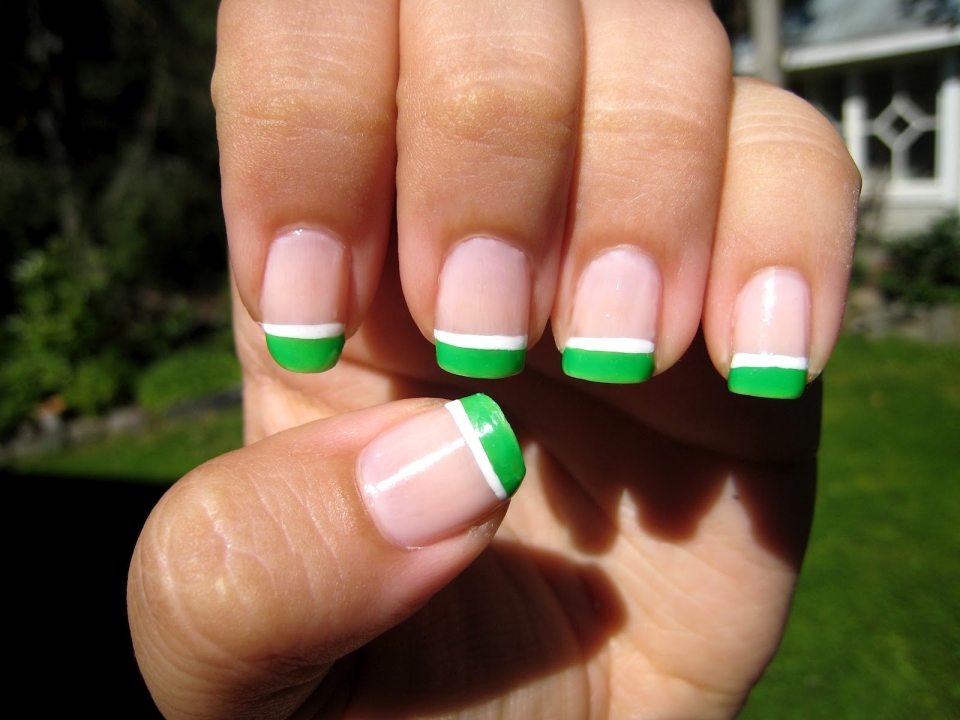 Рисуем французский маникюр мастер в процессе на зеленом фоне