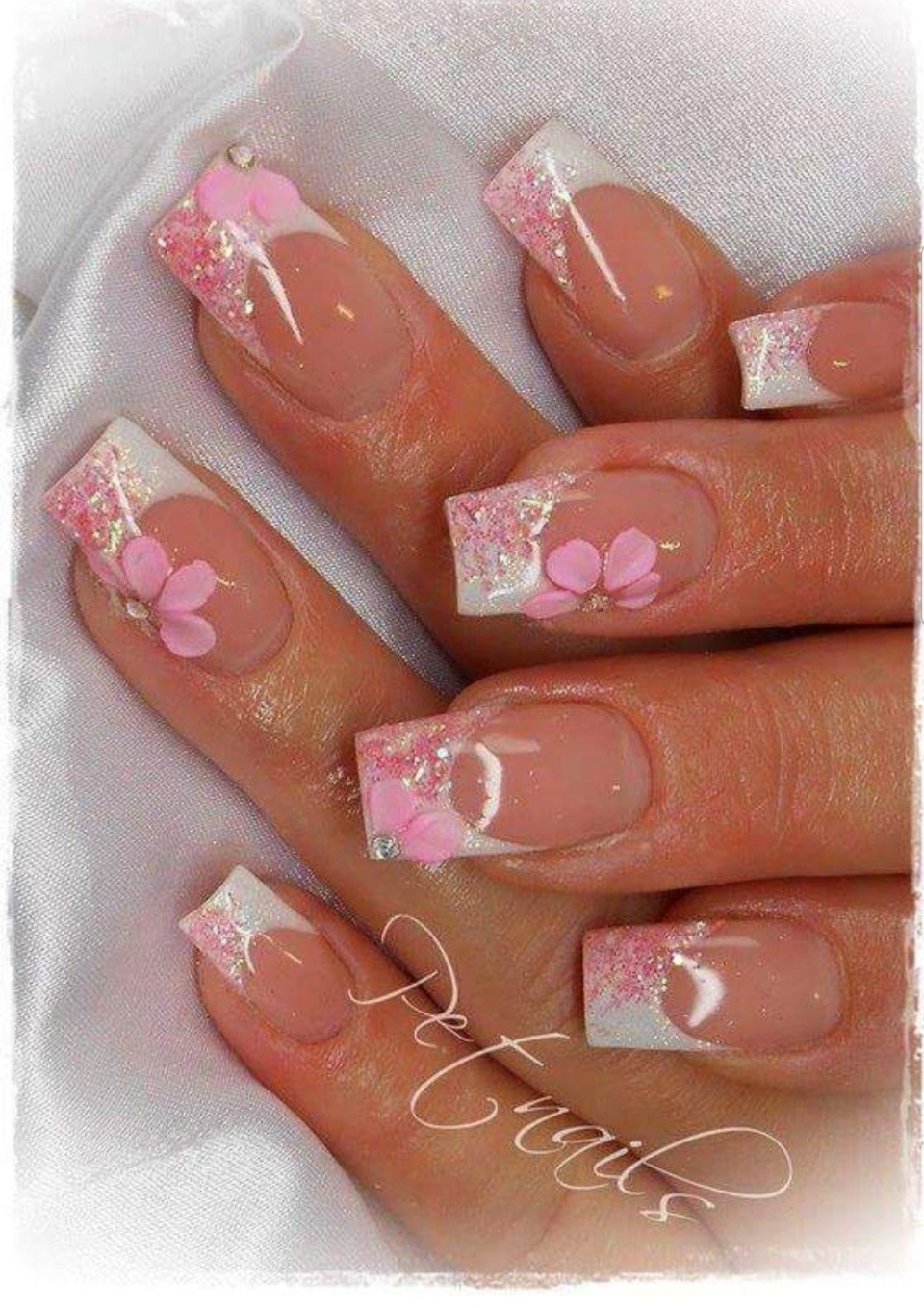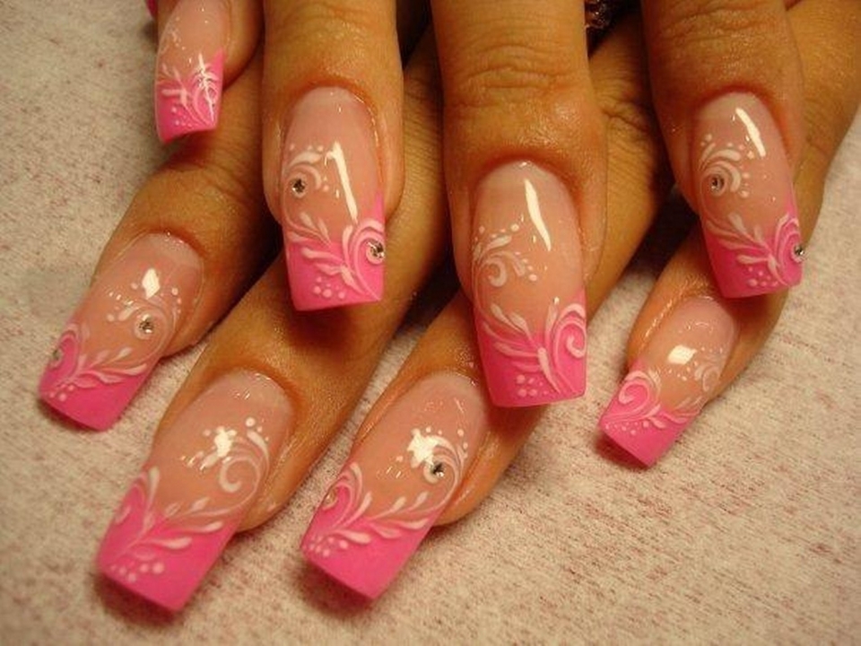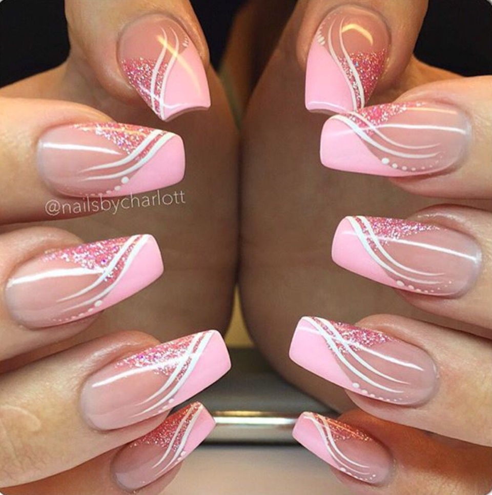 Дизайн ногтей розовый френч с рисунком (58 фото)