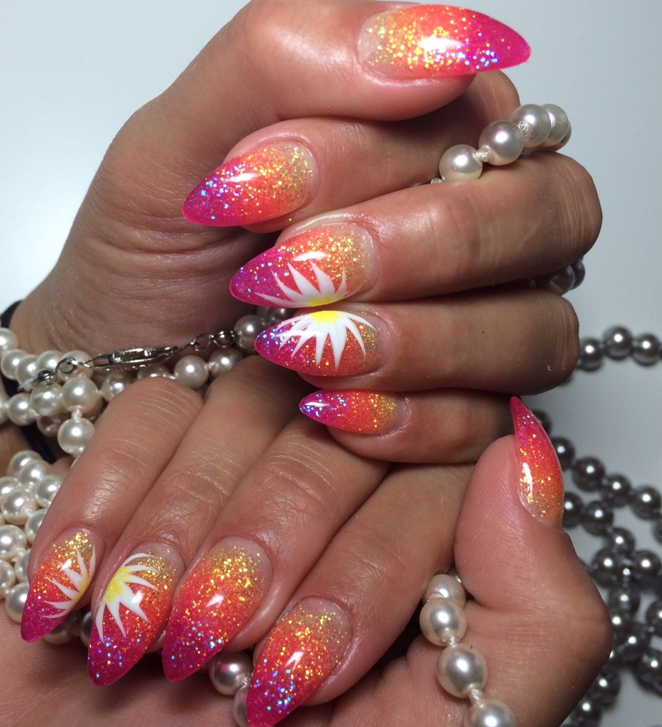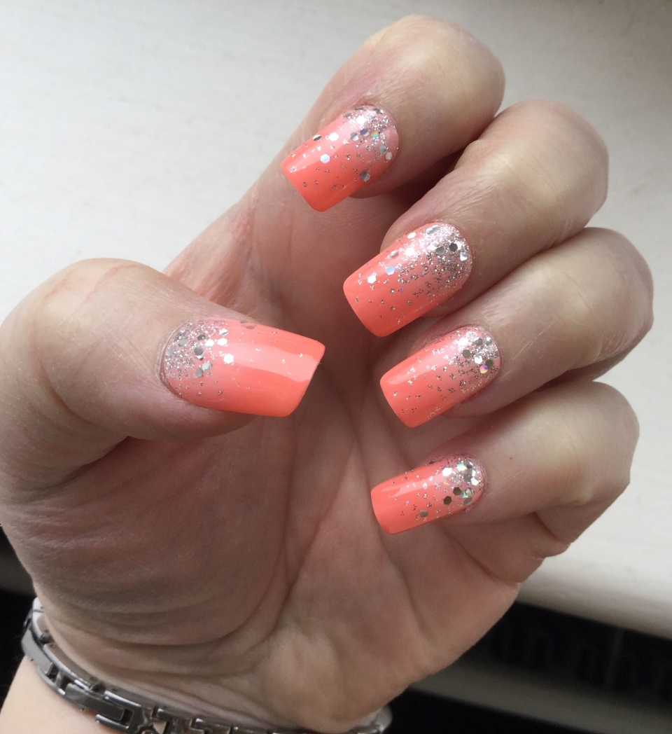Коралловый маникюр с блестками и рисунком (56 фото)