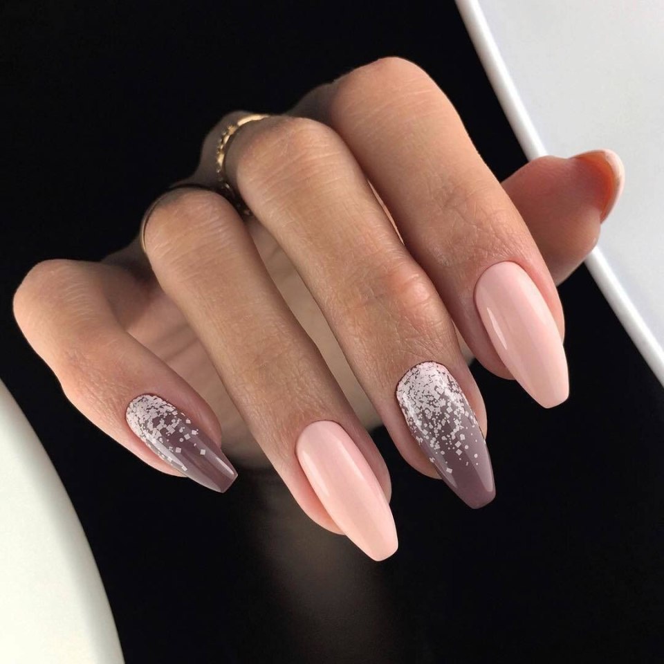 Маникюр 2021 нюдовый модные на миндальную форму ногтей