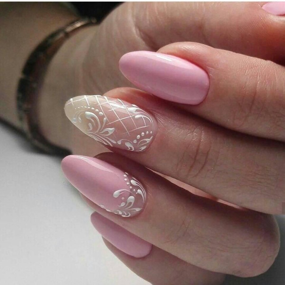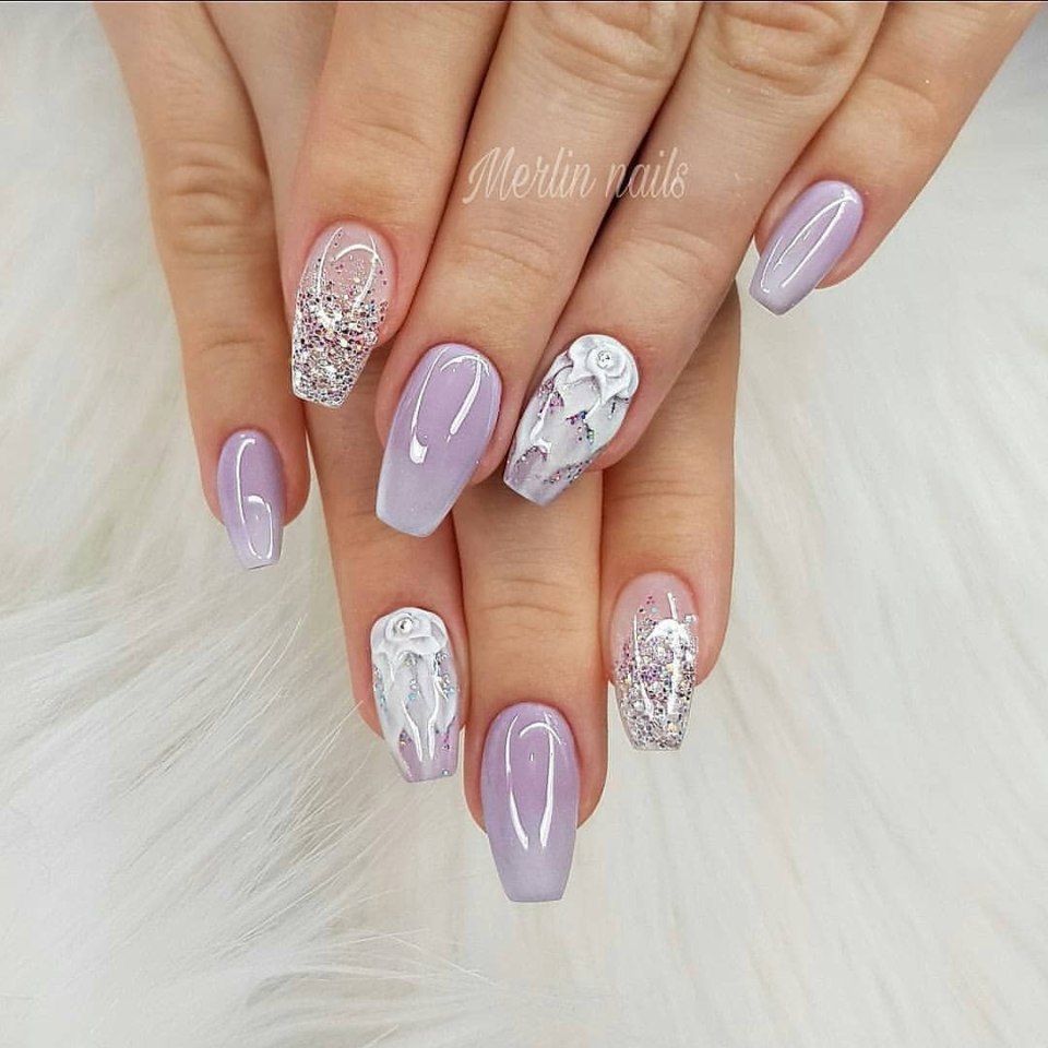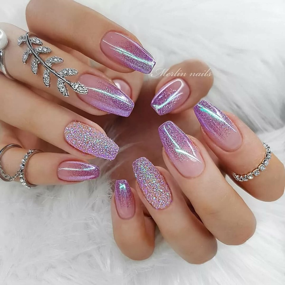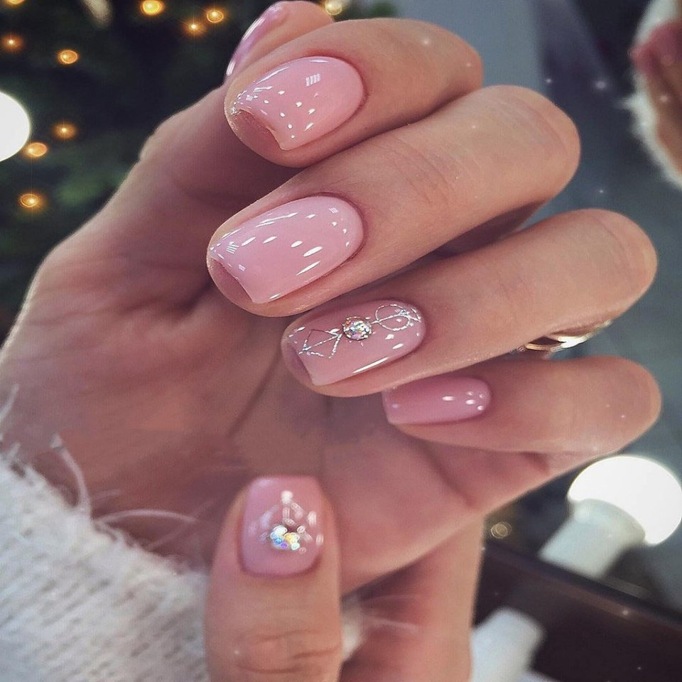 Маникюр дизайн нежный с блестками элегантный весенний (74 фото)