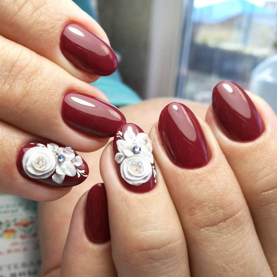 Бордовый маникюр на свадьбу