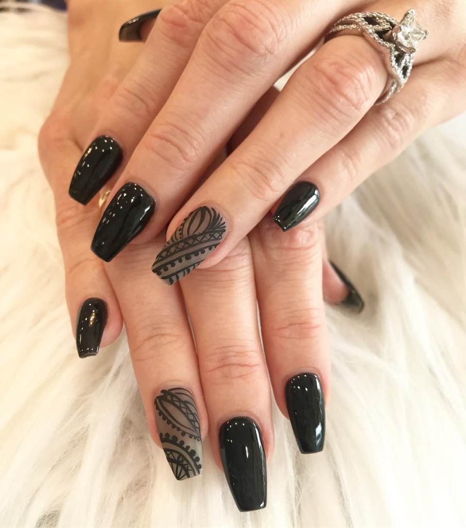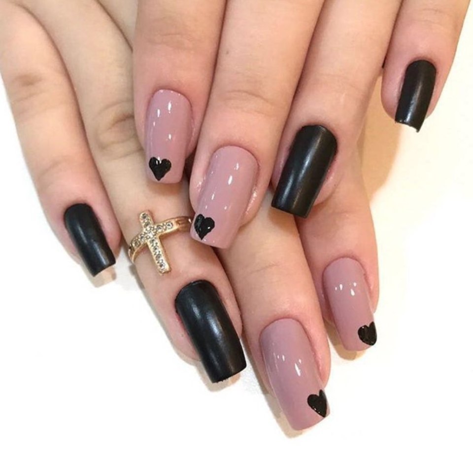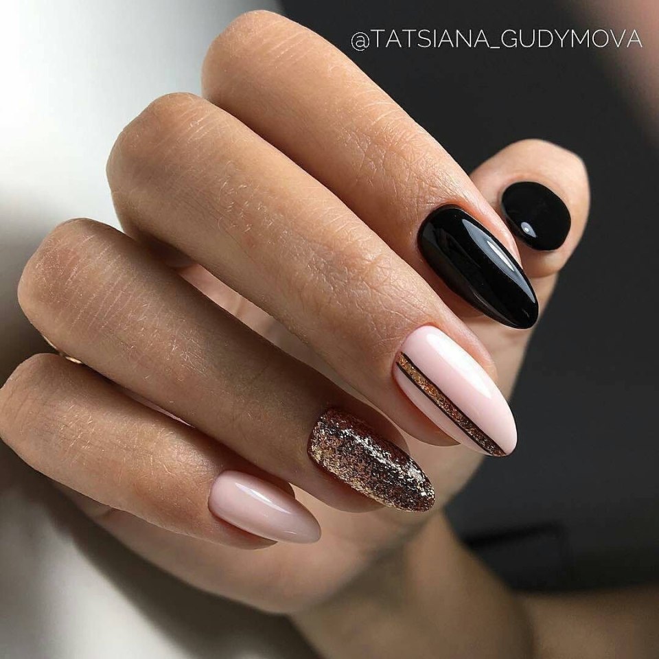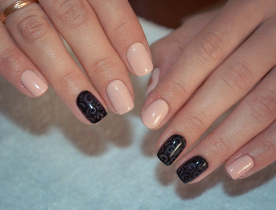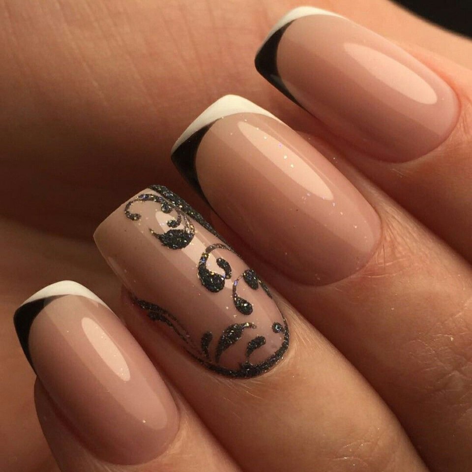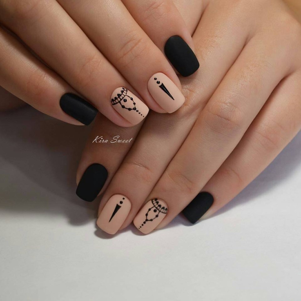 Дизайн ногтей черный с телесным цветом (77 фото)