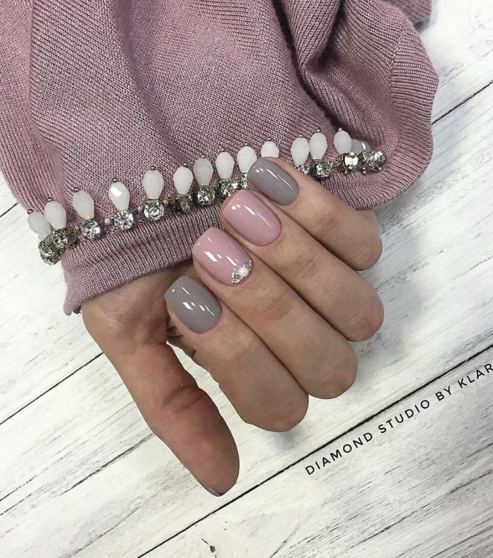 Розовый маникюр с камушками