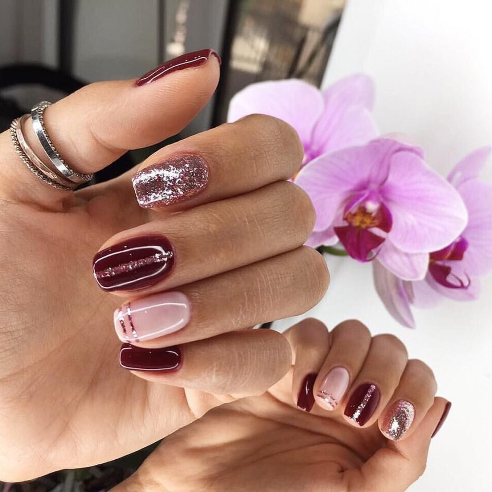 Маникюр бордо марсала бургунди
