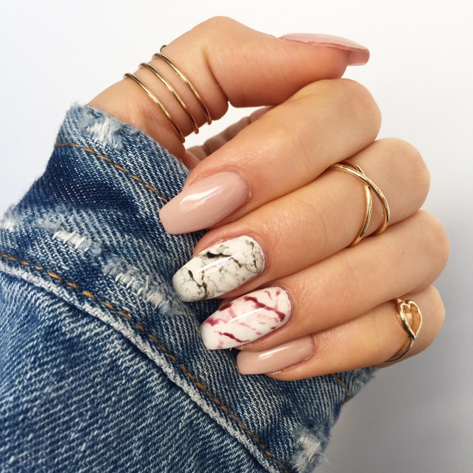 Нюдовый маникюр с мрамором