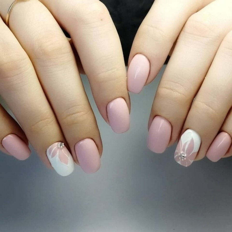 Маникюр нюд с дизайном