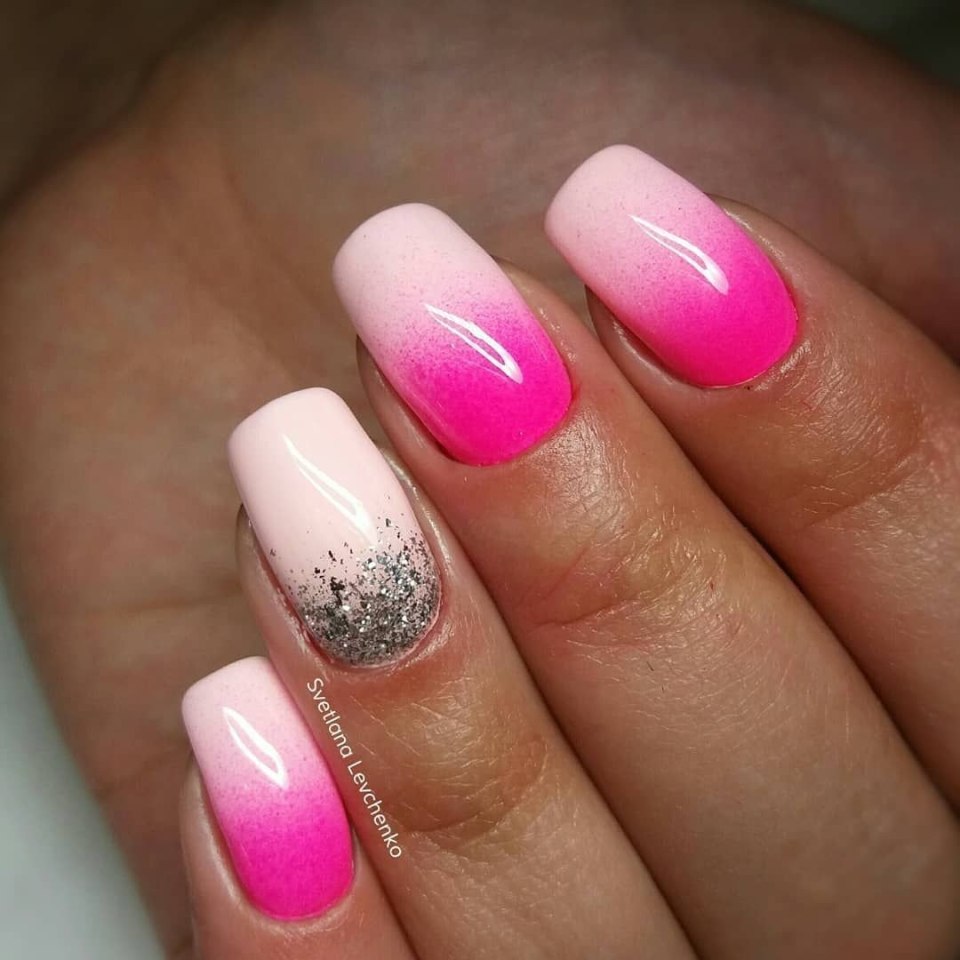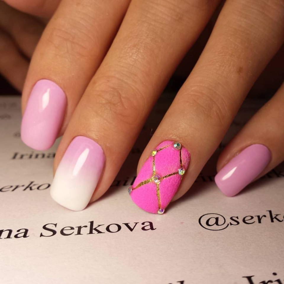 Маникюр розовый градиент с рисунком