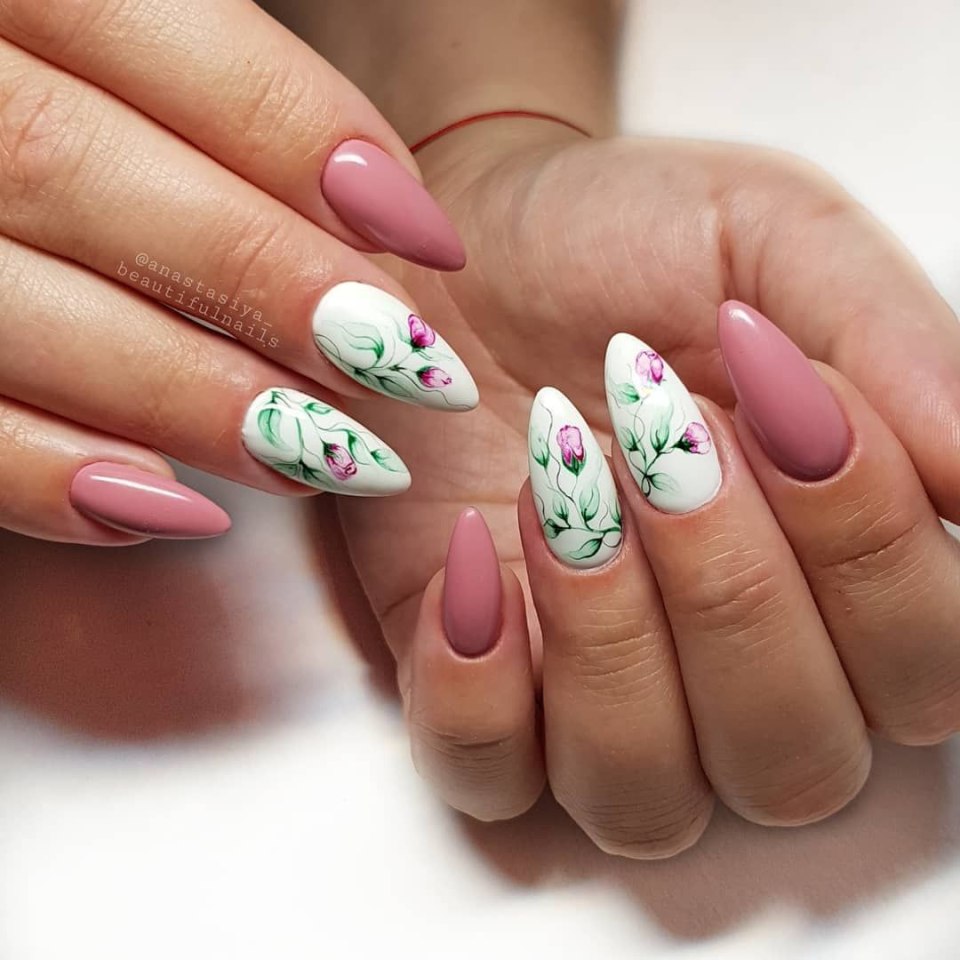Маникюр дизайн нежный молодежный с рисунком красивым (66 фото)