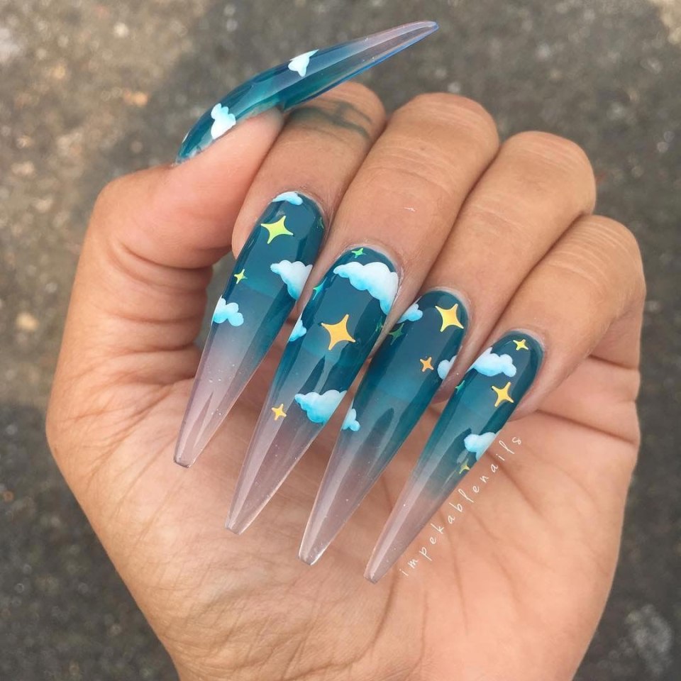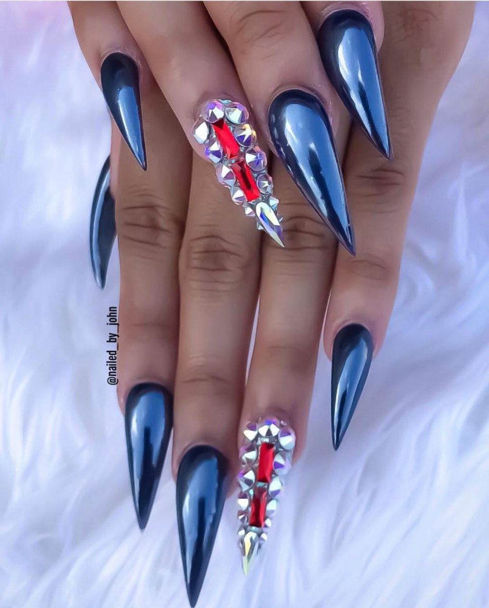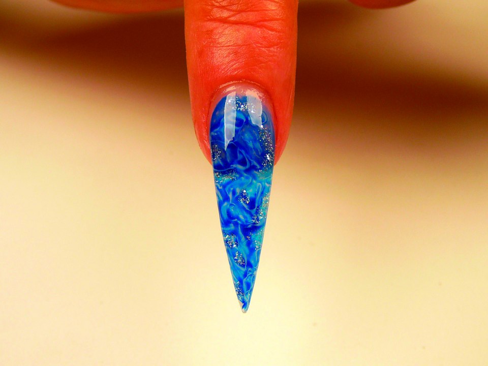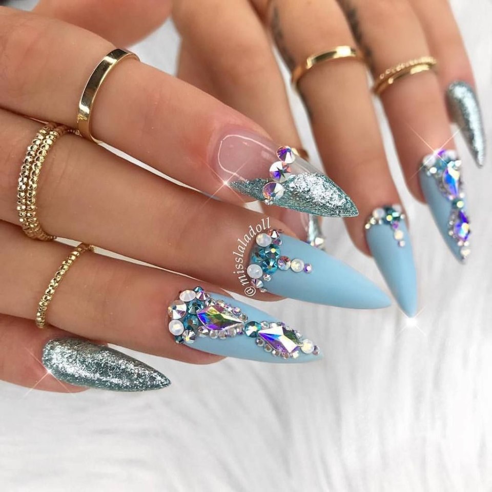 Дизайн ногтей стилетов покрытие голубым фосфора (66 фото)