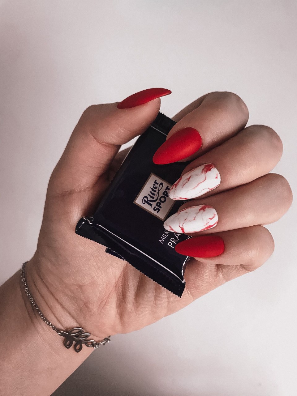 Маникюр разные руки красный