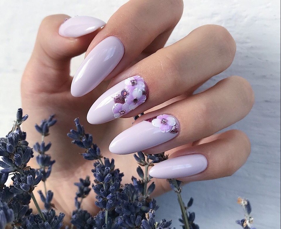Дизайн ногтей миндаль с цветочками (66 фото)