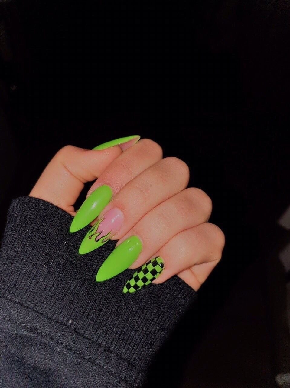 Ногти один ноготь прозрачный длинные квадрат Неоновые с дизайном