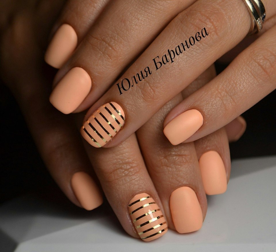 Персиковый маникюр на короткие квадратные ногти (65 фото)