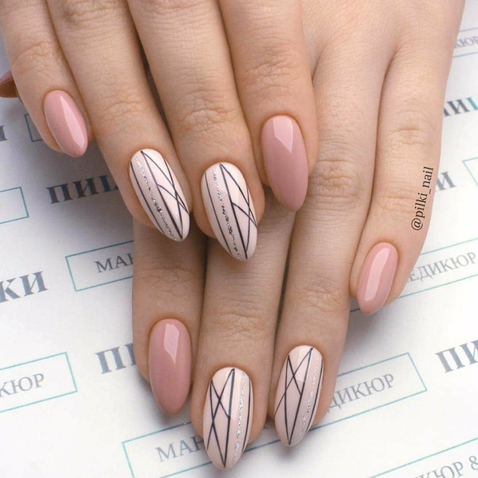 Маникюр дизайн нежный молодежный с рисунком полоски (61 фото)