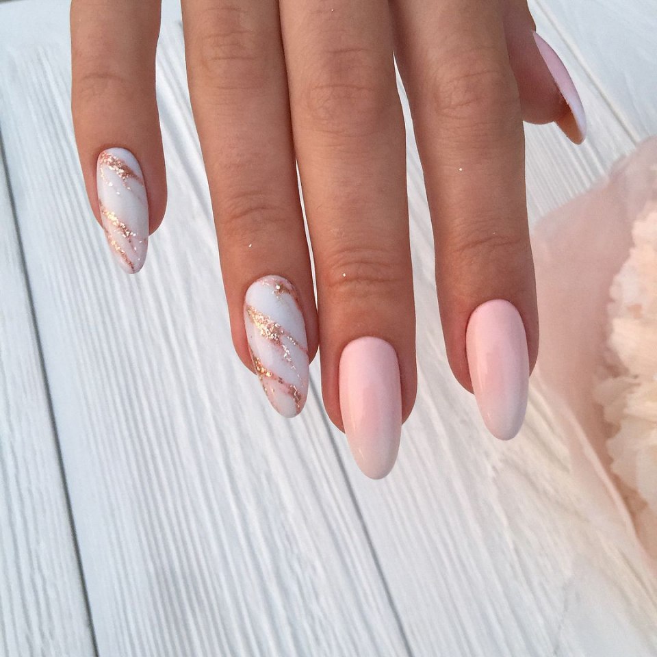 Нюдовый мраморный маникюр 2020