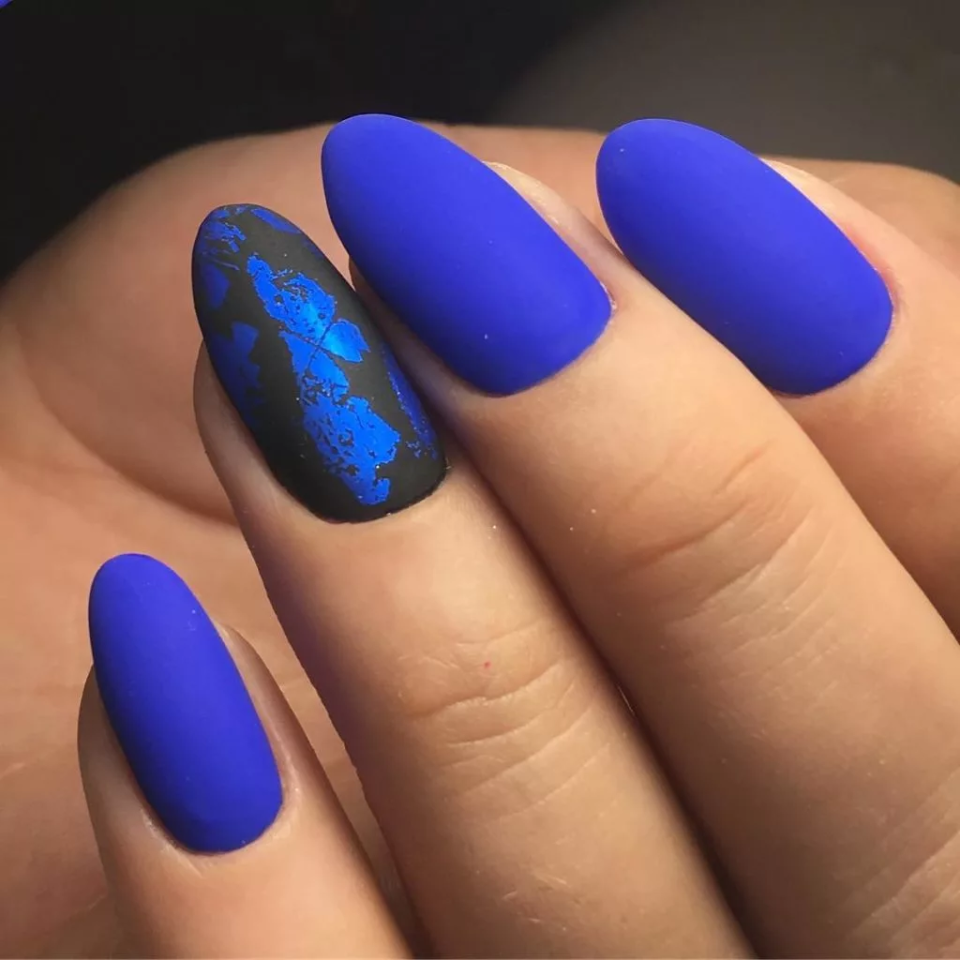 Синие матовые ногти
