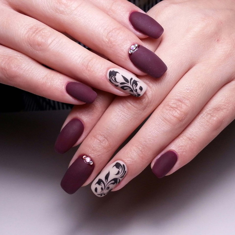 Красивый матовый маникюр с дизайном (64 фото)