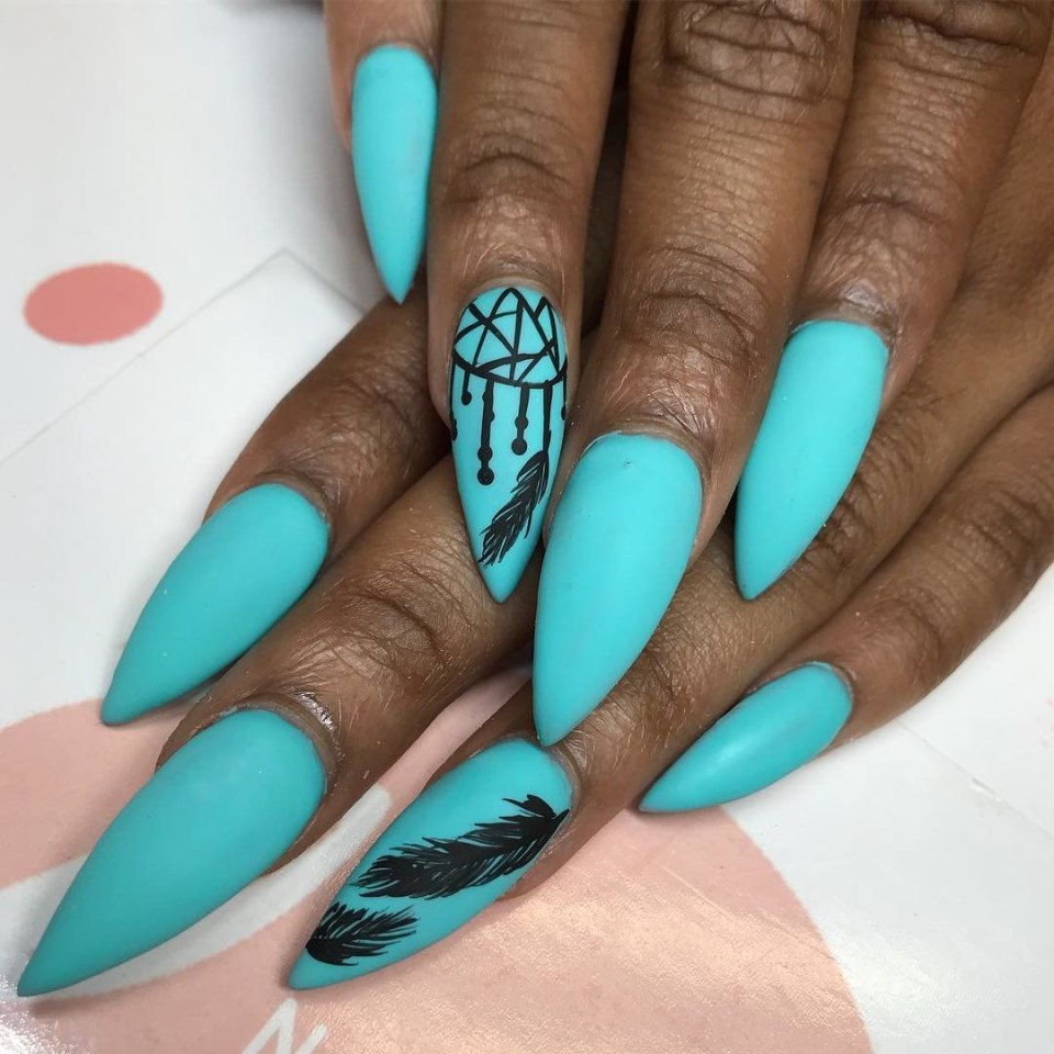 Бирюзовый маникюр с чер